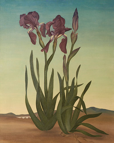 During the 1930s, Lundeberg's career rode the wave of French Surrealism that had arrived recently in the United States. In 1936, she was included in the epochal Museum of Modern Art exhibition Fantastic Art, Dada, Surrealism, organized by its famed director and indefatigable promoter of modernism, Alfred H. Barr Jr. Nonetheless, she had made an effort to establish distance from surrealism. In an October 1934 artist's statement, she declared her work to be "New Classicism," which she called a "Post Surrealist movement." This was possibly the first avant-garde manifesto written in Southern California. She provides a clearer explanation of Post Surrealism in a statement in a 1942 Museum of Modern Art catalog: "The pictorial elements [subject matter] are deliberately arranged to stimulate, in the mind of the spectator, an ordered, pleasurable, introspective activity." Put another way, the various objects she includes are arrayed to provoke thought. For example, those healthy irises in the bone-dry desert do not make any sense, and their juxtaposition may trigger an internal self-critical awareness. While the Parisian Surrealists wanted to disorient, the Post Surrealist Lundeberg tugs and slightly confuses, like a pleasant dream with a nagging something-does-not-add-up feeling.