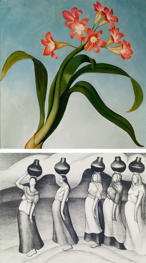 floriformLeft (top): Henrietta Shore (1880–1963), Clivia, ca. 1930, oil and pencil on canvas laid down on board, 26 x 26 in. (66 x 66 cm). The Huntington Library, Art Collections, and Botanical Gardens. Purchased with funds from the Virginia Steele Scott Foundation Acquisition Fund for American Art. © Estate of Henrietta Shore Left (bottom): Henrietta Shore (1880–1963), Women of Oaxaca, ca. 1929, lithograph, 14 x 18 1/2 in. (35.6 x 47 cm). The Huntington Library, Art Collections, and Botanical Gardens. Gift of Hannah S. Kully. © Estate of Henrietta Shore