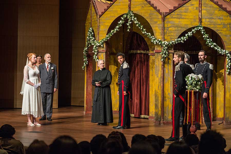 Actors from Shakespeare's Globe in London performed a touring production of Much Ado About Nothing in The Huntington's Rothenberg Hall on Nov. 9 and 10, 2015. Photograph by Jamie Pham.