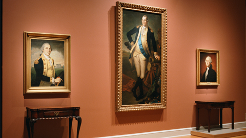 Three portraits of Washington in the Scott Galleries of American Art. © The Huntington Library, Art Collections, and Botanical Gardens.