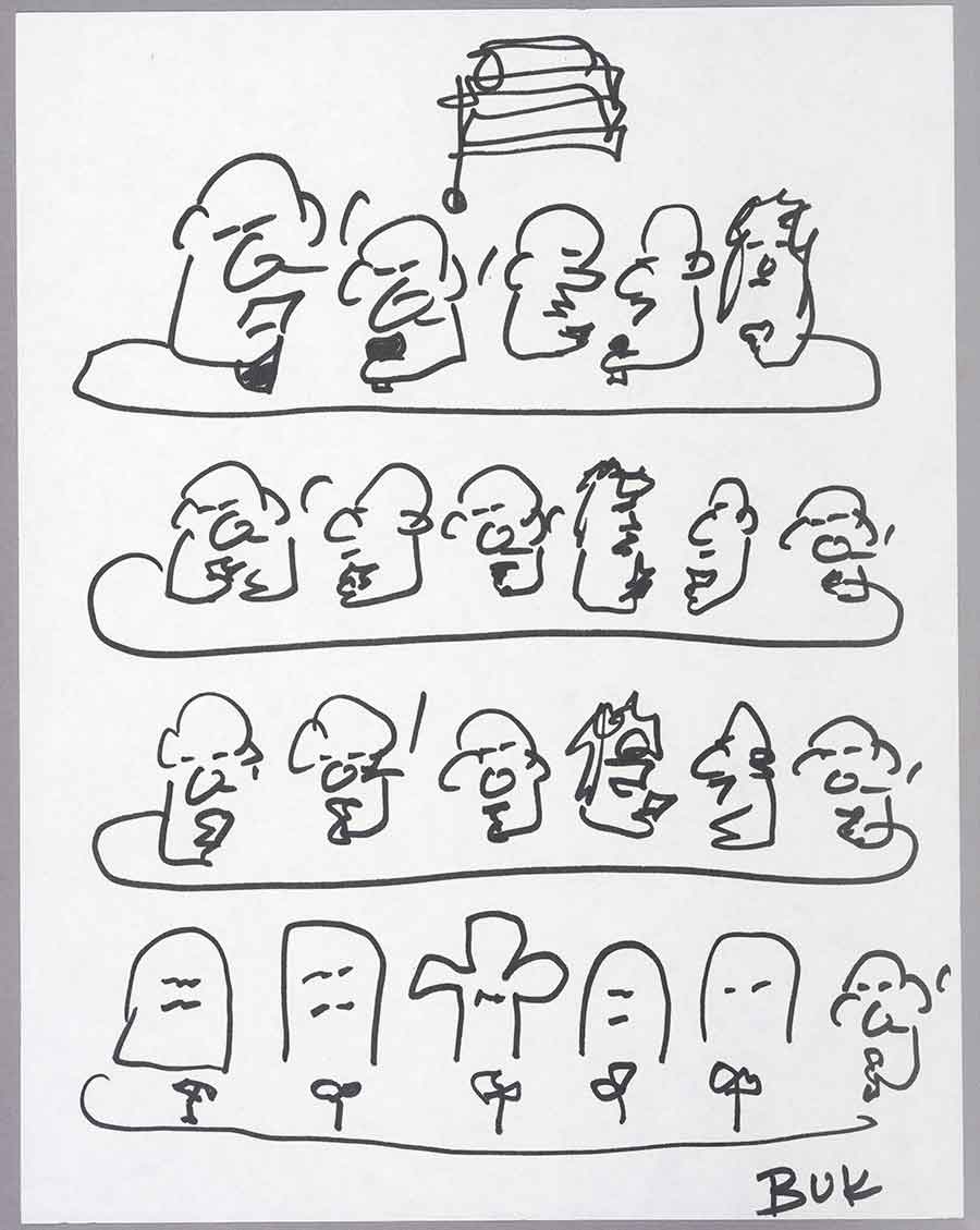Cartoon by Charles Bukowski. The Huntington Library, Art Museum, and Botanical Gardens.
