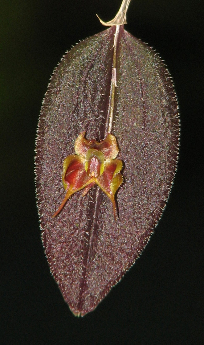 The tiny flower of Lepanthes fiskei measures less than 3/4" in length. Photo by Dylan Hannon.