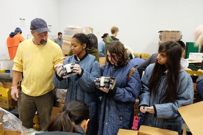 LASA founding director William Deverell with LASA students in the “gleaning room” of the Los Angeles Regional Food Bank, January 2017. Photo by John Lee.