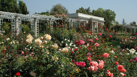 The three-acre Rose Garden was originally established in 1908 for the enjoyment of Henry and Arabella Huntington. Today it delights a much wider audience of nearly half a million visitors each year and ranks consistently as one of the most popular attractions at The Huntington. It's easy to see why: the garden's springtime splendor is hard to beat. But for those with more than just a passing fancy for flowers, the Rose Garden is also rich in horticultural history. Walking along its paths and pergolas, visitors can trace the development of the rose from ancient to modern times through the display of some 1,200 different cultivars. The oldest rose grown at The Huntington, 'Autumn Damask,' is a variety that dates back to the 1st century B.C.