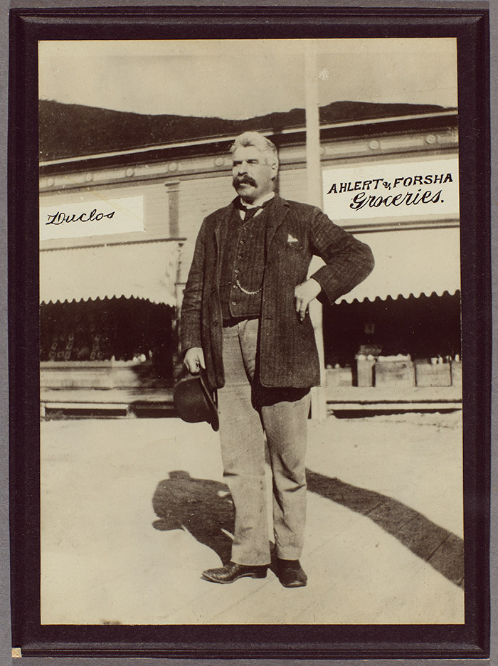 Alexander “Big Alex” MacDonald in Dawson City, ca. 1900. Known as the “Gold King of the Klondike”, MacDonald made millions during the Gold Rush yet died in 1909 in a small cabin in Dawson City, alone and in debt. Unidentified photographer. The Huntington Library, Art Collections, and Botanical Gardens.