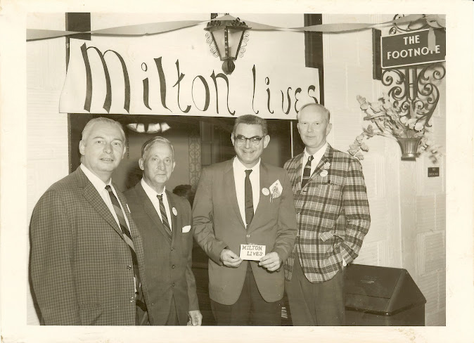 John Steadman (far left), with Allan Nevins, Paul Zall, and James Thorpe at The Huntington in 1963. Nevins was the head of the research division; Zall a professor of English at what is now California State University, Los Angeles; and Thorpe the director of The Huntington.