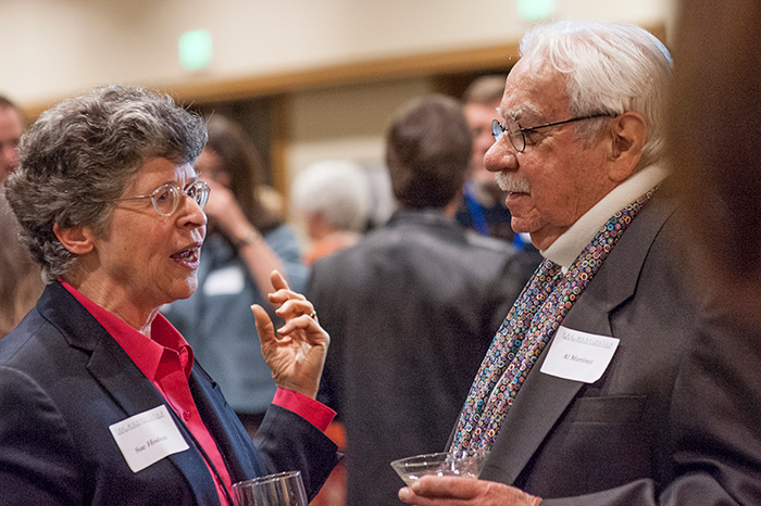 Sue Hodson chats with writer Al Martinez at the opening reception for the exhibition “Al Martinez: Bard of L.A.," March 16, 2012. Photo by Martha Benedict.