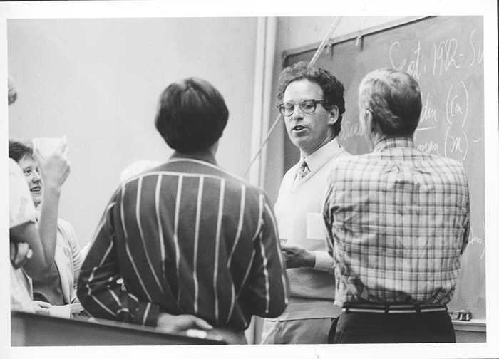 Professor Koblik in a Pomona College classroom in 1983. Photograph courtesy of Pomona College Archives.