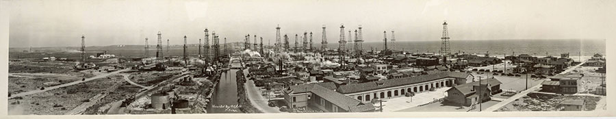 C. C. Pierce & Co., Venice-Del Rey Oil Field, July 9, 1930. Panoramic photograph. Ernest Marquez Collection. Purchase, with Library Collectors' Council subvention, 2014. The Huntington Library, Art Museum, and Botanical Gardens.